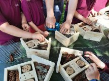 Birželio 6 dieną 1b klasės mokiniai lankėsi klasės draugo Mato tėvelių, Donatos ir Tomo Branauskų, įmonėje „Medžio tikrovė“. Jie susipažino su įmonės veikla, sužinojo, kokie mediniai žaislai čia gaminami, kaip dirbama su staklėmis. Vaikai gamino „Vabaliukų viešbutį“ - prieglobstį įvairiems vabalėliams, naudingiems sodui ir daržui, kovojantiems su kenkėjais.