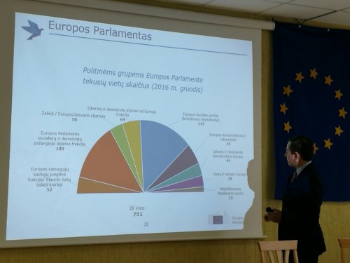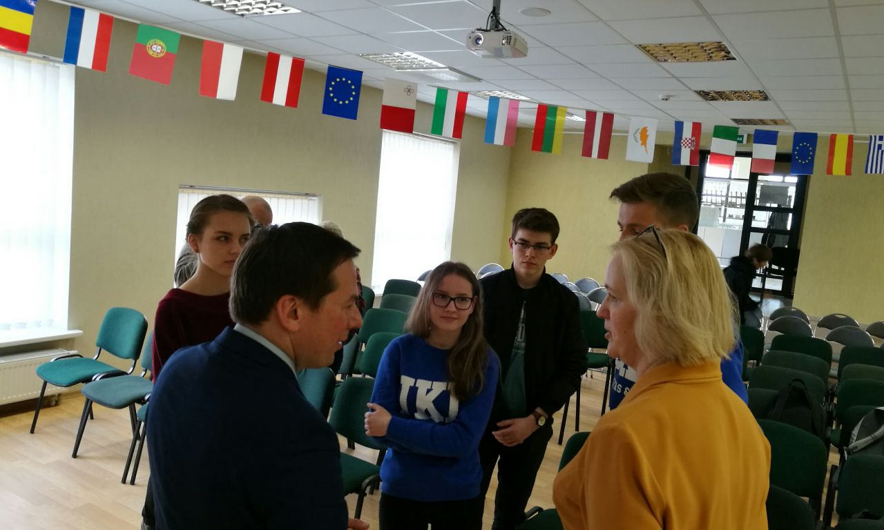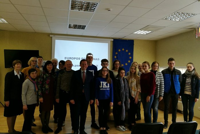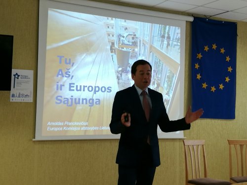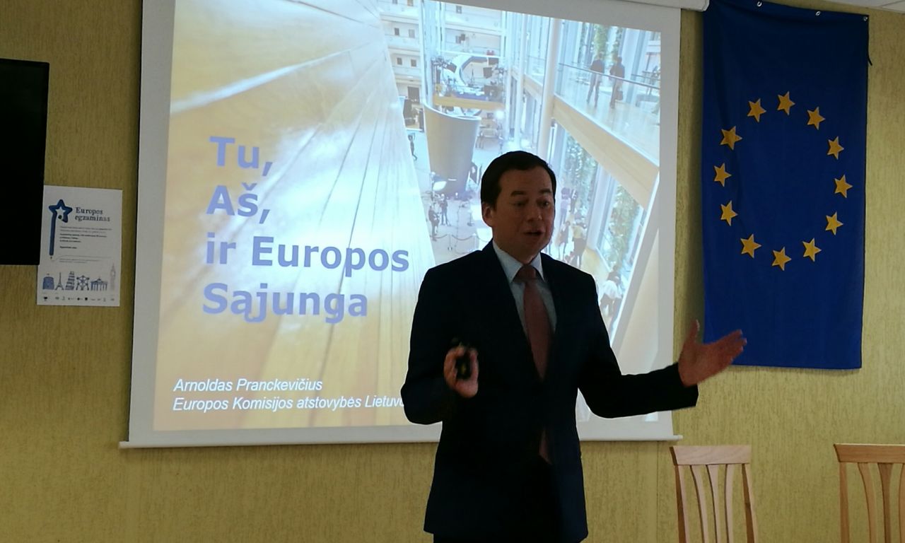 #MEPALietuva.lt. Gimnazistai dalyvaudami projekte „Mokyklos – Europos Parlamento ambasadorės“ ieško įvairių būdų kaip iš arčiau susipažinti su ES, jos struktūra, istorija, veikla. Artėjant Europos egzaminui smalsieji susitiko su Europos Komisijos atstovybės Lietuvoje vadovu Arnoldu Pranckevičiumi. Šis įdomus, komunikabilus ir daug patirties turintis žmogus nejučia įsuko dalyvius į diskusiją apie Europos Sąjungą. Pokalbio metu svečias mokinių ir kitų dalyvių žinias sujungė su asmenine patirtimi. Bendra diskusija lietė Europos istorijos, ekonomikos, teisės, valdymo, bendrų projektų, karo temas. Aptartas ir Europos Parlamento (EP) vaidmuo tarptautinėje arenoje. Pokalbio pabaigoje gimnazistai save įsivertino kaip svarbias istorines asmenybes, kurios nulems tolimesnę Europos ateitį. Juk ši karta yra ta, kuri balsuos istoriniuose Europos parlamento rinkimuose.