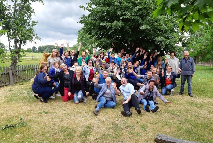 Po smagaus pasivaikščiojimo, direktorė pristatė naują viešnią – Kauno Kazio Binkio teatro vadovę Nidą Vitą Žilinskienę. O tada prasidėjo teatras! Gavo daugybę naudingų patarimų, kaip užimti vaikus, kaip juos prakalbinti, kaip motyvuoti įvairiai veiklai, bet svarbiausia, kad visa tai išbandėme praktiškai. Senosios sodybos kiemas prisipildė nuoširdaus juoko ir suvaidintų – nesuvaidintų emocijų. Gal likusi rašytojo aura mums padėjo atskleisti kūrybines galias?
