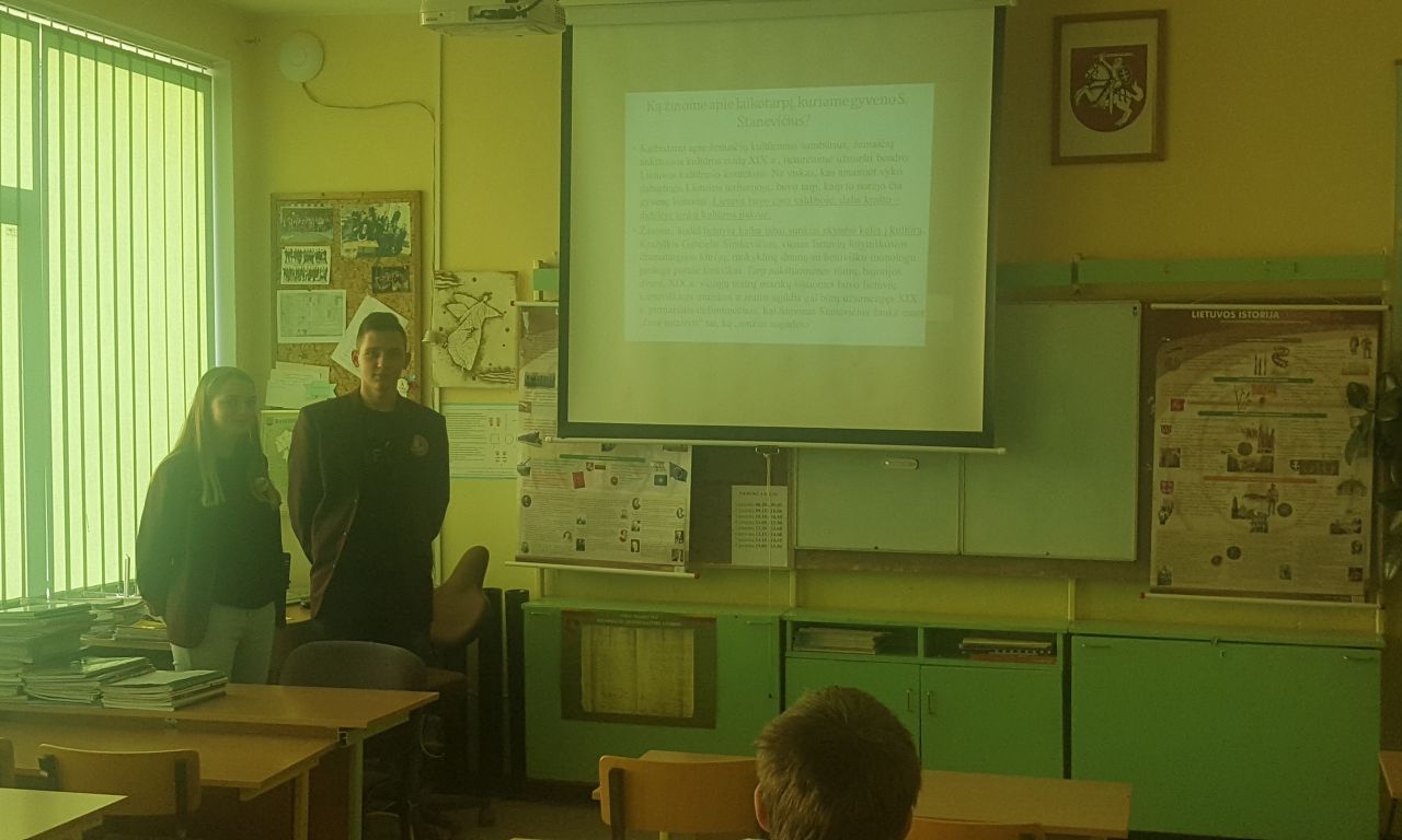 Įgyvendinant projektą „Ekspediciją po gimtąjį kraštą“ spalio 26 d. minėjome poeto Simono Stanevičiaus gimtadienį. Kiekvienais metais mūsų gimnazijoje jau tradicija tapo šią dieną veiklas organizuoti neįprastai. Šiemet kultūros paveldo dienos tema – „Lietuvių kalba kitaip“ . 5-IV klasių mokiniai turėjo galimybę dalyvauti žygyje ir apsilankyti 6 lietuvių kalbos stotelėse, sudalyvauti netradicinėse pamokėlėse, kurias vedė kai kurie gimnazistai. Stotelėse mokiniai praplėtė bei pagilino lietuvių kalbos žinias, jas pritaikė atlikdami praktines užduotis. Visi buvo taip užsiėmę įvairia veikla, kad net nepastebėjo, kaip prabėgo 3 pamokos. Per 4 pamoką 5-8 klasių mokiniai kūrė kryžiažodžius, o I-IV klasių mokiniai dalyvavo protmūšyje.Po to visi susirinko į pramogų salę spręsti sukurtų kryžiažodių bei apibendrinti protmūšio rezultatų.