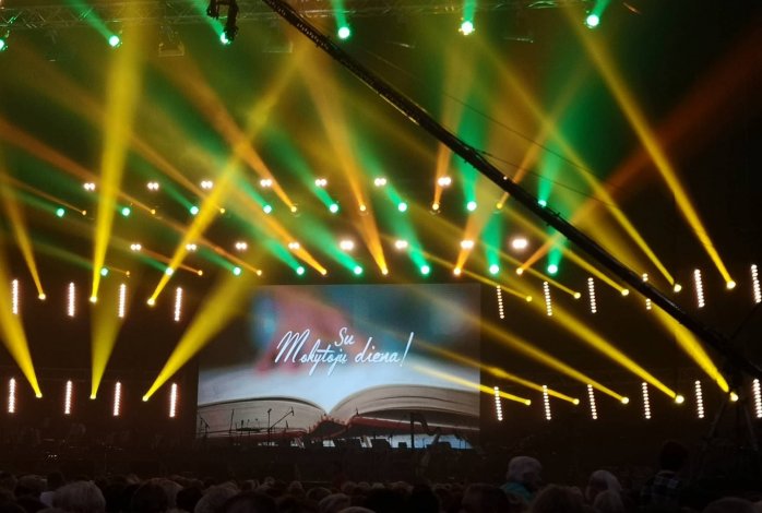 Spalio 3 d. 10 mūsų gimnazijos mokytojų klausėsi koncerto, skirto Tarptautinei Mokytojų dienai paminėti. Koncertas, kuriame nuostabius kūrinius atliko Merūnas Vitulskis, Dagna Kondratavičiūtė ir Kauno simfoninis orkestras, vyko Kaune, „Žalgirio“ arenoje. Šventę vedė šmaikštusis renginių vedėjas, aktorius ir režisierius Andrius Žurauskas. Į sceną pakilo ir Švietimo ir mokslo ministrė Jurgita Petrauskienė. Nors ministrės palinkėjimai buvo gražūs, tačiau arena ją sutiko nedraugiškai.