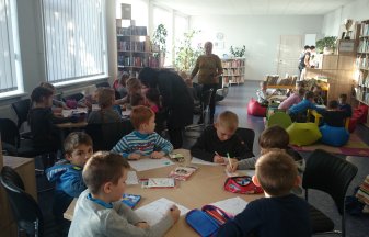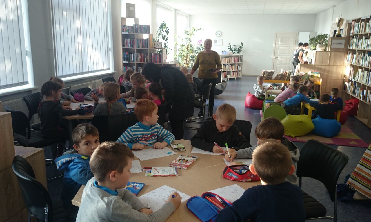 Spalio 10 d. priešmokyklinio ugdymo grupių „Bitutės“ ir „Smalsučiai“ vaikai lankėsi gimnazijos bibliotekoje. Vyko ugdomoji veikla „Susidraugaukime su knyga“, kurią vedė bibliotekininkė Lina Pocienė. Ji supažindino vaikus su bibliotekos taisyklėmis, aprodė bibliotekos erdves. Kiekvienam veiklos dalyviui leido išsirinkti patikusį pasakos veikėją ir jį nuspalvinti. Ši užduotis mažiesiems labai patiko. Bibliotekininkė trumpai pristatė rašytoją Simoną Stanevičių ir perskaitė jo pasakėčią „Arklys ir meška“. Vaikai gavo užduotį: gimnazijos erdvėse surasti arklį ir mešką. Visi buvo nustebę, kai šiuos gyvūnus rado vestibiulyje ant kolonos. Dėkojame bibliotekininkei Linai už šiltą priėmimą. Mes dar ne kartą čia užsuksime.