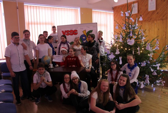 Šį trečiadienį gimnazijos pramogų salė trumpam virto kelionių agentūra VSSG Travels7, kurią aplankė ypatingas klientas. Pats Kalėdų Senelis užsuko išsirinkti poilsinės kelionės. Agentūros darbuotojai plušo iš peties ir siūlė įvairias kelionės kryptis. Buvo pasiūlyta ir Indija, ir Rusija, ir Disneilendas, net ir karštoji Afrika. Vis dėlto po nuostabių šalių pristatymų, Kalėdų Senelis liko ištikimas sau ir pasirinko kelionę į Antarktidą. Išvykdamas jis perdavė nuoširdžius linkėjimus 5a, 6a, 7ab ir 8a klasių mokiniams, kurie puikiai pristatė skirtingas šalis.