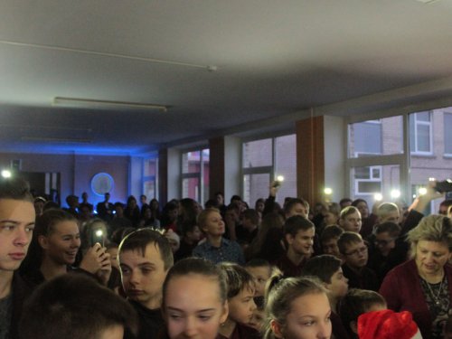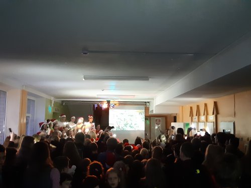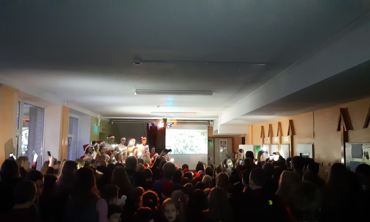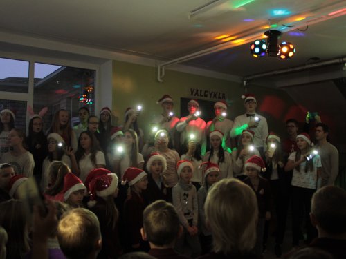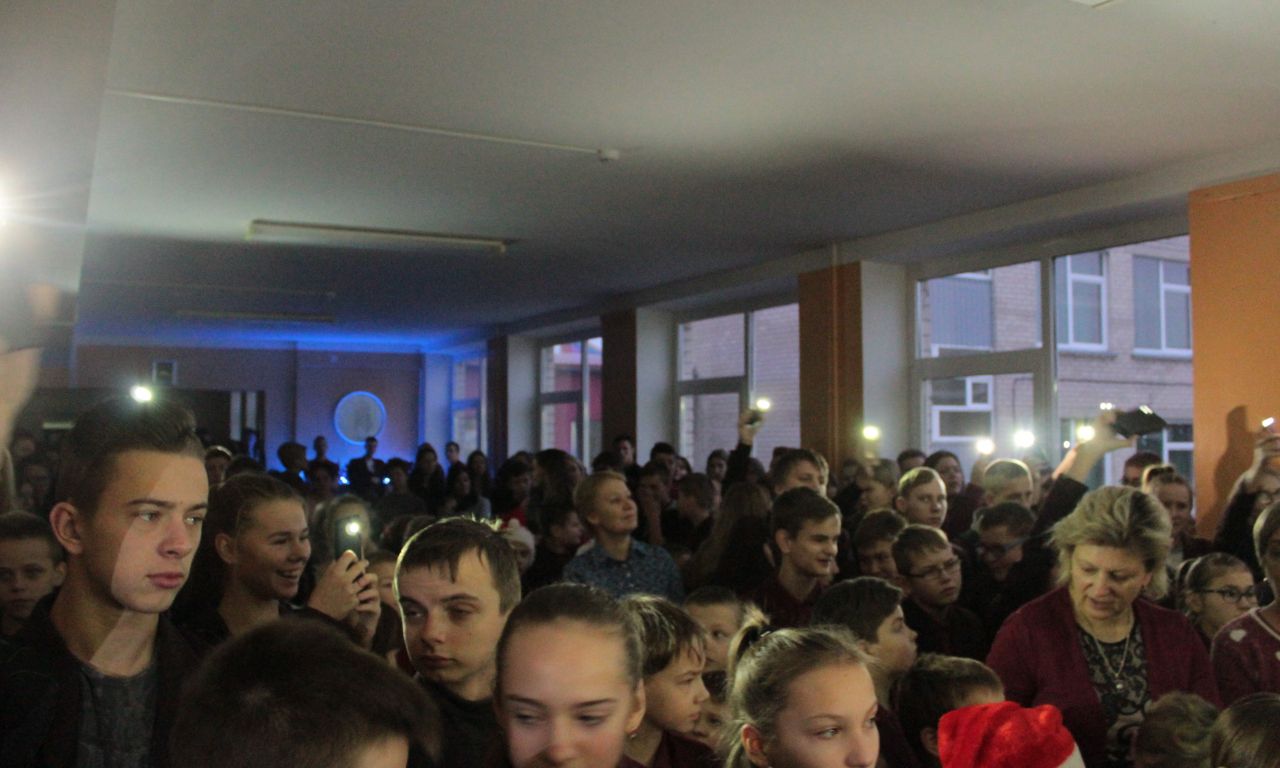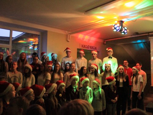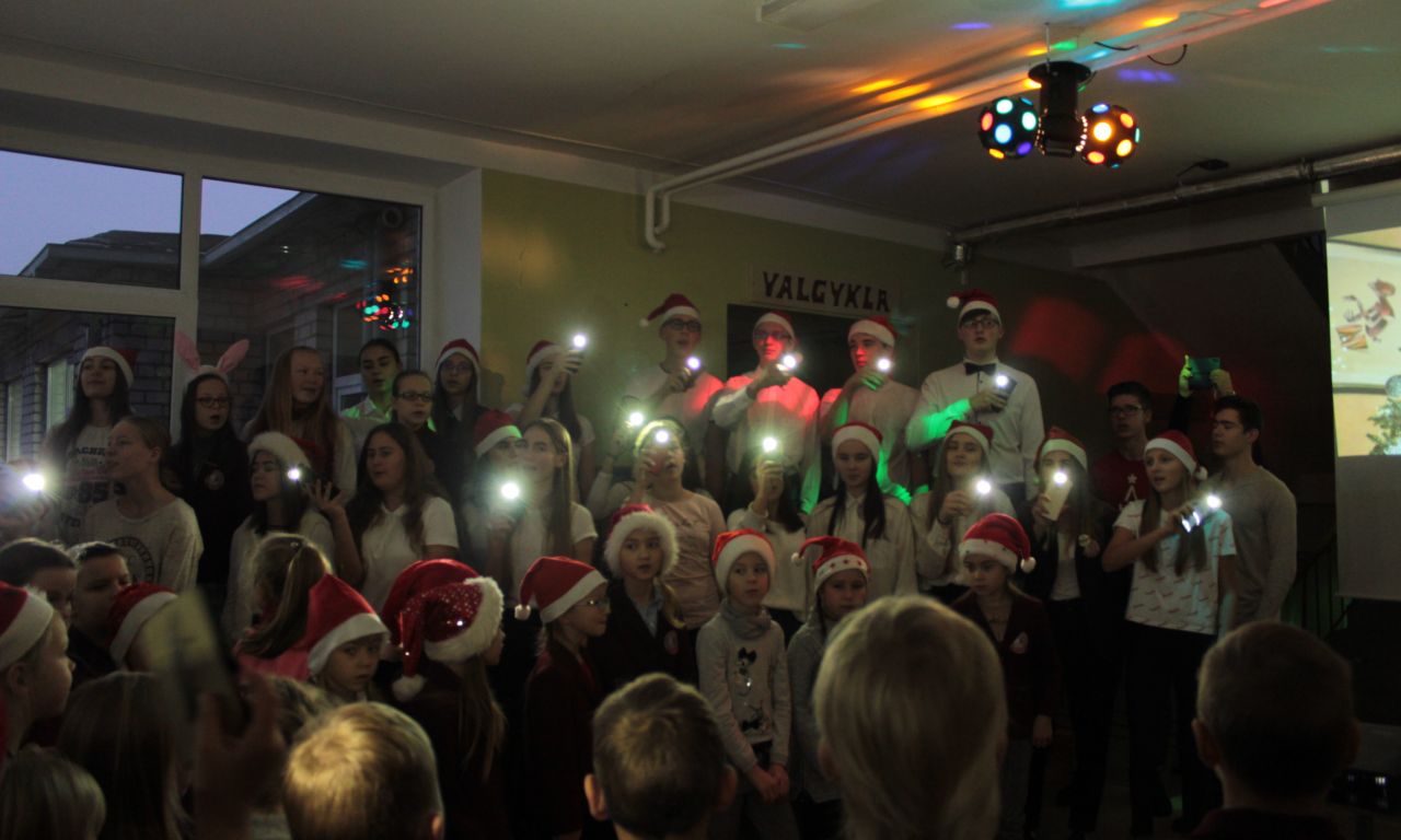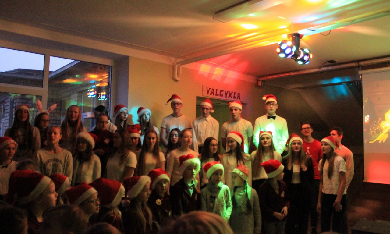 Šiandien rytmetys gimnazijoje prasidėjo šventiškai nusiteikus. Mokinių taryba ir choras dainomis prakalbo apie Kalėdas. Nors už lango sniego nematyti, tačiau visi žino, ką skelbia kalendoriuje gruodžio mėnuo. Visi mėgaujasi šaltuku, kuris žnaibo skruostus, įsivaizduoja besmegenį su morka vietoj nosies, stebi lange blyksinčias spalvotas girliandos švieseles, svajoja apie imbierinius sausainius ir karštą šokoladą bei mintyse dėlioja dovanas po egle. Pasikeitęs gimnazijos skambutis su gera nuotaika pradeda ir baigia pamokas.