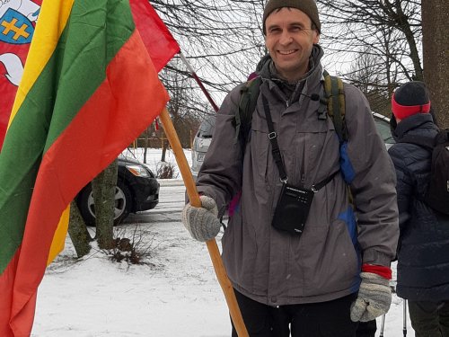 Sausio 5 d. Vykintas Vaitkevičius vedė būrį žygeivių, keliaujančių partizanų vadų takais. Maršrutas driekėsi ir per Viduklę, tad būrys mūsų gimnazijos šaulių, lydimi mokytojų Editos Baltrušaitienės ir Jurgitos Parnarauskienės, keliavo drauge.