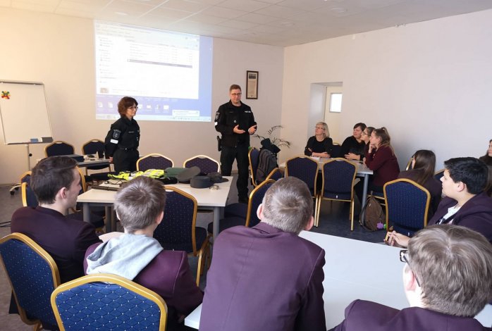 Sausio 30 d. I a, b klasių mokiniai dalyvavo prevenciniame susitikime su Raseinių policijos pareigūnais Darium Jonaičiu ir Giedre Deveikiene. Šį susitikimą suorganizavo I a klasės mokinė, jaunoji policijos rėmėja Gabija Marcinkutė.