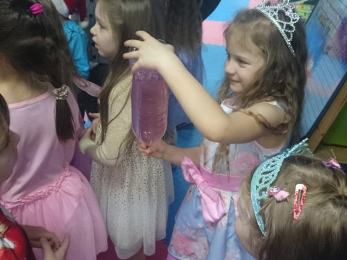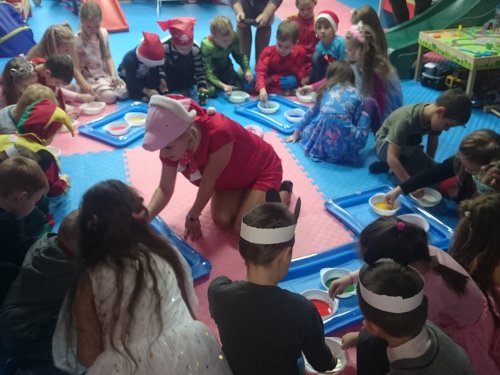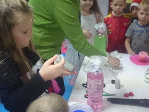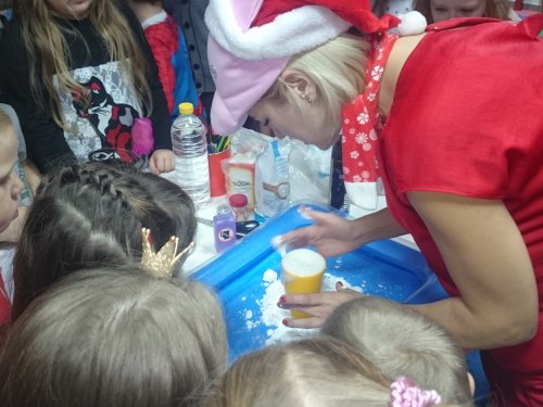 Gruodžio 18 d. „Bitučių“ ir „Smalsučių“ grupės vyko į vaikų labai mėgiamą žaidimų kambarį Raseiniuose „Mylimukas Vukis“. Su vaikais Kiaulytė Pepa ir paršas tėtis Džordžas, laukdami Kalėdų Senelio, atliko linksmus ir įdomius eksperimentus. Vaikai piešė stebuklingą laišką nematomu rašalu. Su susidomėjimu pagamino plaukiančią medūzą. Kiaulytė buvo pamiršusi išsivalyti dantis ir įkyriai kriuksėjo, tad vaikai pagamino daug dantų pastos, kad nepritruktų visais ateinančiais metais. Labiausiai vaikams patiko eksperimentas, kaip pasigaminti šiltą ir limpantį sniegą. Vaikai, užsiėmę eksperimentais, nė nepajuto, kaip į duris pasibeldė Kalėdų Senelis. Priešmokyklinukai jam surengė puikų pasirodymą. Mažuosius pradžiugino padovanota knygelė ir saldi dovanėlė. Šventė vaikams suteikė daug nuostabos, linksmybių ir atradimų. Linkime, kad ir po didžiųjų metų švenčių vaikų neįtikėtinos, paprastos, o kartais ir keistai praktiškos svajonės virstų tikrove!