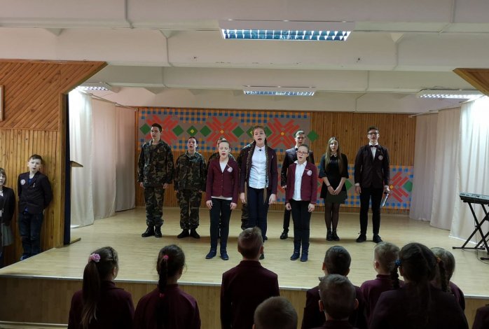 „Tėvynė, praeitis, dorybė, darbas, šviesa, saulė, tiesa, meilė, vienybė, stiprybė“... Šiais jaunųjų šaulių tariamais žodžiais prasidėjo Kovo 11-osios, Lietuvos nepriklausomybės atkūrimo dienos paminėjimas – patriotinės dainos konkursas Viduklės Simono Stanevičiaus gimnazijoje. Konkursui dainas paruošė visos 5-8, I-IV gimnazijos klasės. Penktokai su puikiai debiutavusia soliste Dovile Vasiliauskaite visus maloniai nustebino nepriekaištingai atlikta E. Masytės daina „Laisvė“, 8 a klasės mokiniai sukūrė etiudą su motušėle, padainavo lietuvių liaudies dainą „Oi, neverk, motušėle“. Salė nuščiuvo, kai I b klasės mokiniai savo pasirodymą užbaigė vyrukų tariamais žodžiais : „Mergaite, papuošk kareivio kapą/ baltais akacijų žiedais“. Visi pasirodymai buvo įdomūs, apgalvoti, prasmingi. Vienos klasės rinkosi tautinius rūbus, kitos - šventišką uniformos variantą ar kasdieninio švarko atlapą papuošė trispalve simbolika. Gražios tradicijos turi savitą braižą. Smagu, kad dainuojame, smagu, kad lietuviškai. Ir apie Lietuvą. Apie tikrą ir brangią Lietuvą.