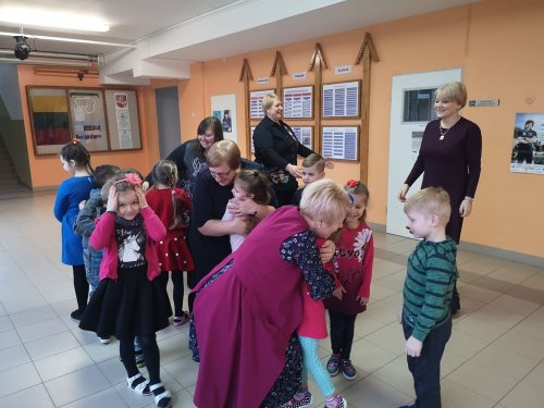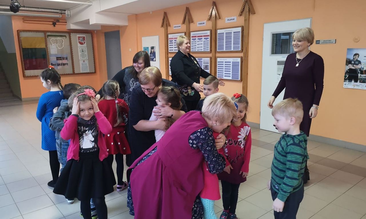 Kovo 18-osios rytą nuostabos ir šypsenų buvo pilni mokinių ir mokytojų veidai, nes nuo ankstyvo ryto visus prie durų pasitiko gimnazijos direktorė Danutė Janukienė ir atvykusius pasveikino apsikabinimais. Šiek tiek vėlėliau prie tokių pasisveikinimų prisidėjo pavaduotojos Audra ir Jolanta, socialinė pedagogė Romena, sveikatos priežiūros specialistė Lina ir būrelis mokinių. Toks linksmas ir šurmulingas pirmadienio rytas nuteikė gražiai ir draugiškai savaitei. Juk apsikabinimas - nieko nekainuoja, o daugeliui suteikia šiltų emocijų. Gražių, draugiškų dienų, daug šiltų apsikabinimų!
