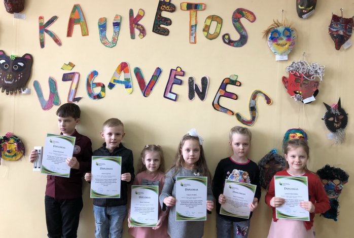 Visi mėgstame persirengti ir krėsti išdaigas, ypač per Užgavėnes, o ypatingai vaikai. Juk smagu bent vieną dieną per metus pasijusti visiškai laisvam, kai, prisidengus kauke, gali išnykti linksmuolių minioje. Kovo 5 d. buvo šaunu dalyvauti konkurso – parodos „Kaukėtos Užgavėnės“ uždaryme ir pasislėpti po savo pasigamintomis kaukėmis mūsų gimnazijos priešmokyklinukams Arielei Petkevičiūtei, Medai Trakšelytei, Vakarei Pociūtei, Auksei Vaidotaitei, Aivarui Apučiui (vaikučių pedagogės Genovaitė Unikauskienė, Rasa Matevičienė ir Vaida Naujokaitienė) ir 3a klasės mokiniui Oskarui Kantautui (mokytoja Raigeda Buzienė). Sveikiname konkurso laureatus. Likome atpažinti, tačiau apdovanoti diplomais už kūrybiškumą, meniškumą, išradingumą, kaukių išskirtinumą.