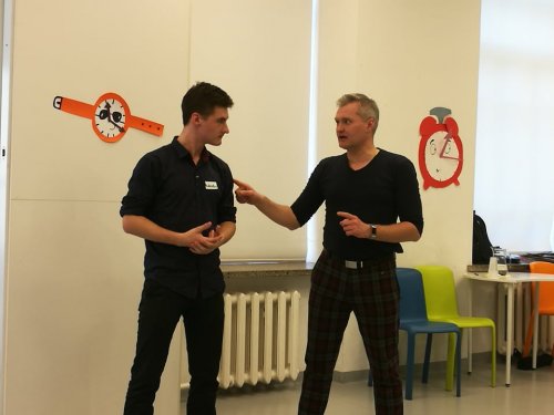 Pirmadienį, kovo 25 d., istorijos mokytoja Gintarė Tytmonienė ir IIa gimnazijos klasės mokinys Andželas Gvazdauskas dalyvavo pokyčio projekto „Renkuosi mokyti – mokyklų kaitai" istorijos pasakotojams skirtuose mokymuose. Profesionalūs lektoriai Andrius Ivanovas ir Vytautas Kontrimas dalinosi patirtimi apie viešojo kalbėjimo įgūdžius. Mokymuose mūsų gimnazija buvo pasirinkusi kryptį - patyriminis ugdymas. Komanda dalinosi projekto įgyvendinimo sėkme.