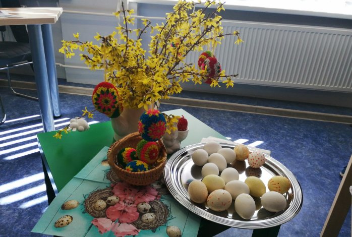 Didžioji savaitė yra viso krikščioniško gyvenimo centras. Ji skirta pasiruošti Didžiajam Velykų įvykiui-švęsti Kristaus kančios, mirties ir prisikėlimo slėpinį. Ši šventė reiškia pergalę prieš mirtį-atgimstančią gamtą. Paprotys per pavasario šventes dažyti kiaušinius Lietuvoje labai senas. Kiaušiniai buvo dažomi tik natūraliais, dažniausiai augaliniais dažais. Norėdami prisiminti senas tradicijas Viduklės Simono Stanevičiaus gimnazijos bibliotekininkės Lina ir Edita vedė edukacinį užsiėmimą su 7ab klasėms. Užsiėmimo metu aptarėme Velykų šventės tradicijas ir papročius, kiaušinių marginimo prasmingumą, margučių spalvos simboliką, raštų kalbą. Na, o vėliau kiekvienas galėjo vašku papuošti Velykinį kiaušinį ir nudažyti natūraliais dažais: ciberžole, arbata, kava. Tikime, kad šis smagus užsiėmimas Velykų išvakarėse taps prasmingas, o įgytos žinios ir patirtis sujungs 7ab klasės mokinius ir jų šeimos narius. Linkime visiems gražių ir prasmingų šv. Velykų. Lai prisikėlęs Kristus į mūsų namus atneša tikėjimą, viltį ir meilę.