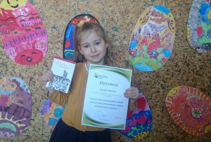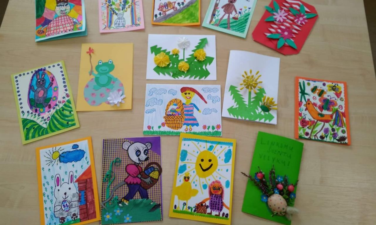 Priešmokyklinukai rajoniniame velykinių atvirukų konkursui pagamino 15 kūrybingų atvirukų, kuriuos apipavidalinti padėjo pedagogės Vaida, Rasa, Genovaitė ir Loreta. Sėkmė lydėjo „Bitučių“ grupės ugdytinę, 6 metų, Faustėją Višinskytę, kuri nupiešė spalvingą pievelę su vabalėliais, o svarbiausias akcentas, tai gaidelis, ridinėjantis velykinius margučius. Džiaugiamės, kad mažoji mergaitės rankelė ir spalvos paklūsta Faustėjos vaizduotei. Sveikiname laureatę.