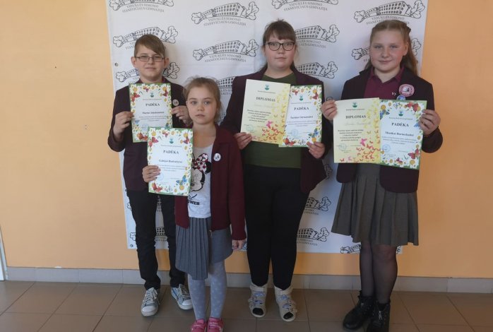 Už dalyvavimą meninio skaitymo konkurse „Vaikystės žodžiai“ visiems dalyviams buvo įteiktos padėkos ir visi apdovanoti meninio skaitymo konkurso dalyvio ženkliukais. Geriausiems skaitovams įteikti diplomai ir asmeninės dovanėlės. 3-4 klasių mokinių grupės geriausia skaitove pripažinta 4a klasė mokinė Monika Burneckaitė ir 5-6 klasių geriausias skaitovė - Šarūnė Sirtautaitė. Dėkojame mokytojoms, parengusioms mokinius: Silvai Vitauskienei, Ingridai Urbutienei, Ingai Bertašienei, Stasei Kuodienei.
