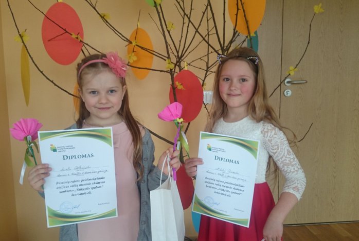 Balandžio 16 d. vyko rajoninis priešmokyklinio amžiaus vaikų meninio skaitymo konkursas „Vaikystės spalvos“. Dalyvavo 15 skaitovų iš rajono ugdymo įstaigų, kuriuos drąsino, nuotaikingai nuteikė personažai, švenčių belaukianti Velykų bobutė su kiškučiu („Saulutės“ l/d pedagogės). Konkurso laureatėmis tapo „Bitučių“ grupės ugdytinė Arielė Petkevičiūtė, deklamavusi Justino Marcinkevičiaus eilėraštį „Grūdų ginčas“ ir „Smalsučių“ grupės ugdytinė Nikolė Tarosaitė, deklamavusi Karolinos Kazlauskienės eilėraštį „Boružėlė“. Sveikiname mažąsias skaitoves ir dėkojame pedagogėms Vaidai Naujokaitienei ir Rasai Matevičienei.