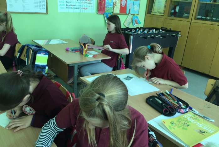 3a ir 4b klasės mokiniai dalyvavo integruotoje pasaulio pažinimo bei dailės ir technologijų pamokoje. Vaikai ieškojo informacijos apie pasirinktą ES valstybę ir gamino vėliavėles. Su mokinių atliktais darbais galite susipažinti aplankydami parodėlę pradinukų koridoriuje.