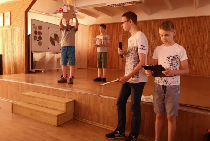 Ketvirtadienį gimnazijoje vyko baigiamasis patirtinio ugdymo savaitės renginys – kūrybinių, tiriamųjų, projektinių darbų konferencija. Visos komandos, o jų buvo 13, parengė įvairius patirtinės veiklos pristatymus – pateiktis, filmukus, demonstravo pagamintas mokymosi priemones, žaidimus, pasakojo, ką įdomaus ir naudingo nuveikė per šią savaitę. Mokytojų Editos Baltrušaitienės ir Indrės Jokūbauskienės komanda papasakojo, kokia spalvų reikšmė liturgijoje ir mūsų gyvenime, pristatė atliktą tyrimą, kokios spalvos vyrauja gimnazijos bendruomenės narių aprangoje skirtingomis savaitės dienomis. Linksmieji mokytojos Danutės Vykertaitės vaikinai pademonstravo, kokių geometrinių figūrų galima pagaminti iš atliekų, kaip nesudėtingai gimsta sudėtingos mokymosi priemonės, padedančios pamokose. Kita matematikų komanda, kurią subūrė mokytoja Dalia Janušauskienė, ne tik gamino figūras, „mušo“ sviestą, matavo, kiek vandens yra agurkuose, bet ir linksmai pramogavo Taurų parke. Visus nudžiugino mokytojos Virginijos Petrošienės komandos atliktas tyrimas Viduklės tvenkinyje, jo pristatymo metu ne tik sužinojome keistų vabzdžių pavadinimų, bet ir išgirdome išvadą – tvenkinys švarus, jame galima maudytis. Mokytojos Daura Giedraitienė ir Jurgita Parnarauskienė mokė mokinius atpažinti, išreikšti emocijas ir tai padaryti ne tik lietuviškai, bet ir angliškai, ne tik jas įvardijant, bet ir nupiešiant. Ištikus bėdai žinosime, kad galime kreiptis į mokytojos Valdos Petrokienės komandą, kuri išmoko tvarstyti, daryti dirbtinį širdies masažą, pagelbėti užspringus ir kitais nenumatytais atvejais. Kokia vidutinė žmonių gyvenimo trukmė Viduklės apylinkėse, kokia populiariausia pavardė, kokie vyraujantys dirvožemių tipai? Į šiuos ir daugiau klausimų atsakė geografų komanda darniai dirbusi su mokytoja Vilma Jokubauskiene. Pratęsiant Viduklės pažinimo temą daug padirbėjo jaunieji gidai, parengę pažintinį Viduklės gidą anglų kalba. Jiems vadovavo mokytoja Laima Borkertaitė. Pažinti gimtąjį Raseinių kraštą kvietė mokytojo Donato Baukio parengtas veiklų planas. Jį įgyvendino Iab gimnazijos klasių mokiniai, apsilankę įstaigoje „Atrask Raseinius“, susipažinę su lankytinomis rajono vietomis ir praktiškai išbandę turisto „kailį“. Kai kam tai buvo pirma nakvynė palapinėje, pirmas žygis pėsčiomis. Kartu su Raseinių krašto muziejumi po Raseinių rajoną pakeliavo ir istorikų grupė, vadovaujama mokytojų Gintarės Tytmonienės ir Tomo Kantauto. Jų tikslas – pagaminti istorinių stalo žaidimų, buvo pasiektas su kaupu, o gamtoje išbandytas ir senovinis žaidimas, sukėlęs daug smagių emocijų. Galbūt, kada nors šiuos įspūdžius į komiksus ar animacinius filmukus sudės kita mokinių grupė, sėkmingai šio meno mokiusis su mokytojomis Audra Butkiene ir Sima Trakšeliene. Mokytis šio meno paslapčių mokiniai keliavo net į Klaipėdą. Ar kas nors girdėjote, kad aukso pjūvį galima rasti ne tik matematikoje, bet ir literatūroje? Paklauskite mokytojų Zitos Karpinienės ir Laimutės Jaščepaitės komandos, jie ne tik papasakos, bet ir įrodys, atsivertę Maironio ar M. Martinaičio eilėraščių tomelį. Mokytoja Emilija Zakaitė subūrė mokinių komandą – neabejingą gamtai ir klimato pokyčiams. Jie ištyrė gimnazijos šiukšlių dėžių turinį, padarė išvadas ir pateikė rekomendacijas, kaip sumažinti šiukšlių kiekį, gamino daugkartinio naudojimo maišelius iš nebenaudojamų rūbų. Visiems patiko ir rūbų mainų akcija, kurios metu buvo galima atnaujinti savo garderobą, neišleidžiant nei cento.