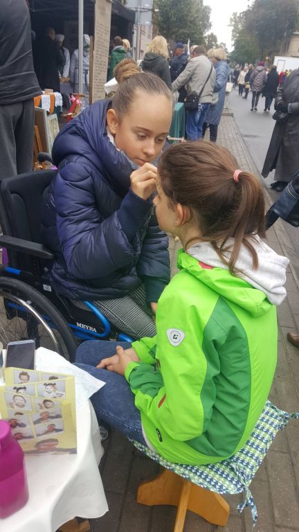Rugsėjo 21 d. Raseiniuose vykusioje rudens šventėje „Bendrystės sodai“ mūsų gimnazistė Vakarė Jokubauskaitė dalyvius puošė kūno piešiniais. Mažųjų šventės dalyvių veidai pasipuošė plaštakėlių, boružėlių, tigriukų, kačiukų ar Betmano piešinukais. Pagundai „pasigražinti“ neatsispyrė ir modernusis mūsų rajono savivaldybės meras Audrius Bautronis.