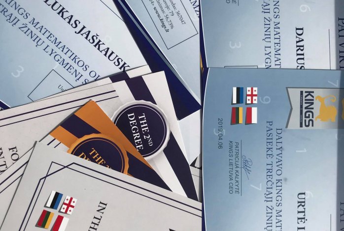 Šiandien gimnaziją pasiekė tarptautinės olimpiados „KINGS“ komandos siuntinys, o jame - padėka gimnazijai, mokinių diplomai, padėkos mokytojams, ruošiusiems mokinius olimpiadai, klasių diplomai ir plakatai, pranešantys apie naujojo olimpiadų sezono pradžią. 2019 metų pavasario semestro ataskaita: matematikos olimpiadoje dalyvavo 65 mokiniai, finalo rezultatų vidurkis 54%, anglų kalbos olipiadoje dalyvavo 74 mokiniai, rezultatų vidurkis 70%, lietuvių kalbos olimpiadoje dalyvavo 49 mokiniai, rezultatų vidurkis 79%. Džiaugiamės mokinių sėkme ir linkime laimėjimų naujame sezone.