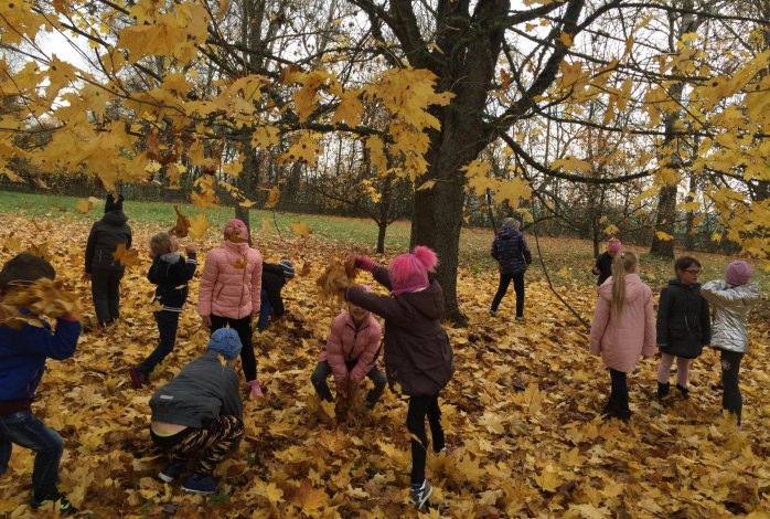 Spalio 21 d. 1a ir 1b klasės mokiniai dalyvavo integruotoje lietuvių kalbos, fizinio ugdymo ir dailės pamokoje, kuri vyko Simono Stanevičiaus sodyboje - muziejuje. Kaip visada mokinius šiltai pasitiko muziejininkas Klemensas Krolys. Jis priminė mokiniams keletą rašytojo gyvenimo epizodų, parodė pasakėčių personažus: lapę, mešką, juodvarnį. Mokiniai išklausė pasakėčią ,,Aitvarai“, atliko užduotis, nupiešė patikusį personažą. Smagu buvo palenktyniauti sodybos kieme, vaikščioti lapų labirintu.