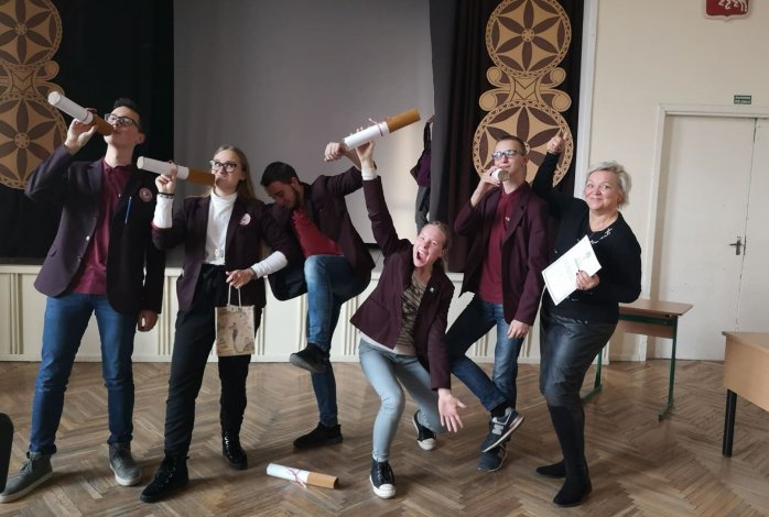 Dalyvavome protmūšyje - kūrybinėse dirbtuvėse „Žaidimai, linksmybės, priklausomybės", Prezidento Jono Žemaičio gimnazijoje. Mes - pirmi! Ačiū šauniausiai komandai: Rugilei, Monikai, Gintui, Lukui ir Pijui!