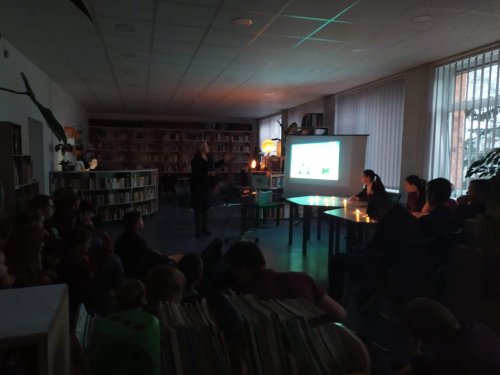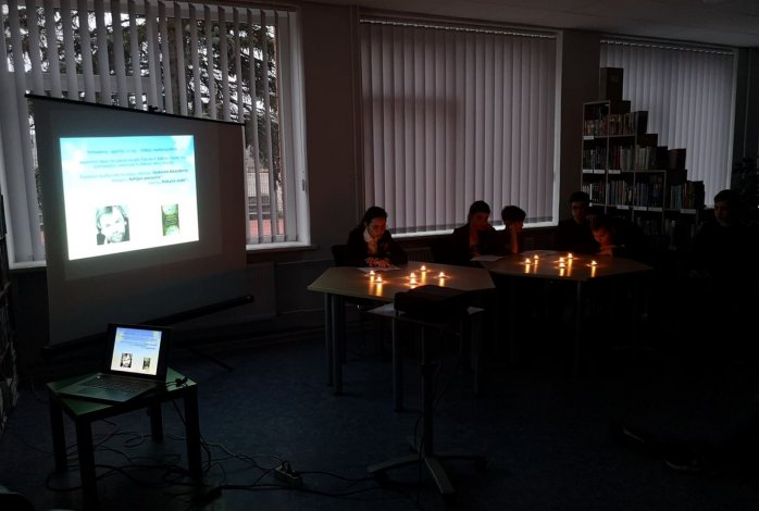 Lapkričio 11 d. 6 a klasės mokiniai klasės rytmečiui rinkosi į biblioteką. Čia, žvakių šviesoje, vyko norgvegų rašytojo Josteino Gaarderio knygos „Sofijos pasaulis“ garsiniai skaitymai. Šis rymetys, kaip ir visas lapkričio mėnuo, buvo skirtas Šiaurės šalių literatūrai.