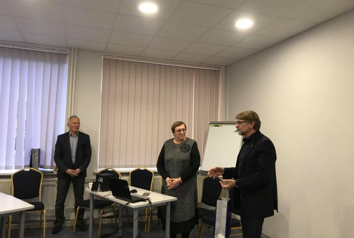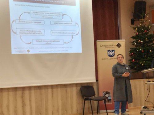 Gruodžio 13 dieną (penktadienį!) gimnazijoje svečiavosi net 40 įvairių ugdymo įstaigų vadovų iš Prienų miesto ir rajono. Svečius atlydėjo Raseinių rajono savivaldybės Švietimo, kultūros ir ugdymo skyriaus vyr. specialistas Jonas Tamošaitis. Aplankę Ariogalos gimnaziją, „Saulutės“ darželį, svečiai, nestokodami geros nuotaikos, įžengė pro gimnazijos duris. Gimnazijos direktorė trumpai pristatė gimnazijos istoriją, svarbiausius veiklos aspektus, tai, kuo džiaugiamės, tai, dėl ko išgyvename. Pavaduotoja Audra papasakojo apie patirtinio ugdymo veiklas ir patirtį, o kaip patirtinis ugdymas taikomas matematikoje vaizdžiai pristatė matematikos mokytoja Dalia. Pavaduotoja Jolanta kalbėjo apie edukacinių erdvių įtaką ugdymo rezultatams ir pakvietė svečius susipažinti su kuriamomis, atnaujinamomis ar jau gyvuojančiomis ir teikiančiomis džiaugsmą gimnazijos edukacinėmis erdvėmis. Manome, kad svečiams pas mus patiko, nes jie nuoširdžiai džiaugėsi, domėjosi, gyrė ir fotografavo (atsiklausę), galvodami, kad gal kokią idėją pritaikys ir savo ugdymo įstaigose.