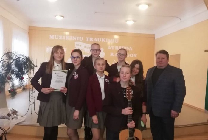 Gruodžio 12 d. Nemakščių M. Mažvydo gimnazijoje vyko Raseinių r. mokyklų mokinių festivalis – konkursas „Muzikiniu traukiniu atrieda Kalėdos“. Mūsų gimnazijos merginos pasirodė puikiai ir buvo nuominuotos muzikaliausia komanda. Puikiai buvo atlikti namų darbai, kūrybinės ir kitos užduotys. Šaunu, kad yra tokių kūrybingų mokinių.
