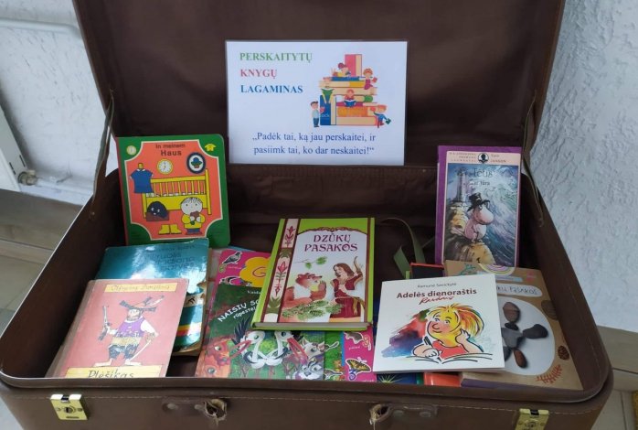 Koridoriuje prie bibliotekos apsigyveno „Knygų mainų lagaminas“. Tai vieta, kur kiekvienas gali palikti ar pasiimti knygą. Kviečiame gimnazijos mokinius ir kitus bendruomenės narius pildyti šį lagaminą. Tai skatins ne tik skaitymą ir domėjimąsi įvairia literatūra, bet ir draugiškumą, bendruomeniškumą, savanorystę.