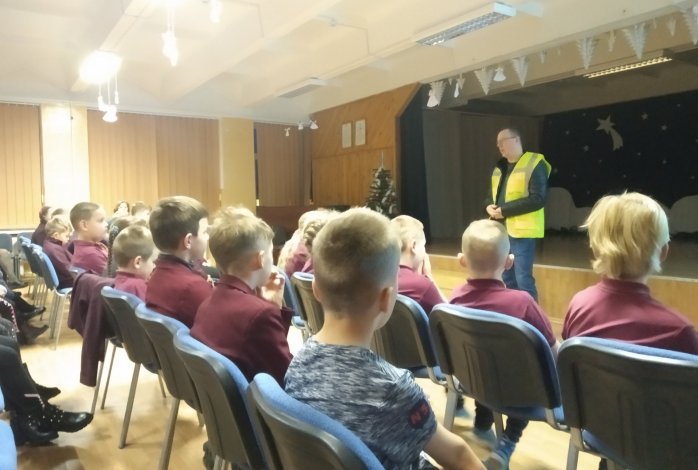 Sausio 8 d. gimnazijoje lankėsi Lietuvos automobilių kelių direkcijos atstovas Linartas Kiškis. Sveikatos rytmečio metu (mokinių saugumas viena iš sveikatinimo temų), pradinių klasių mokiniai, kartu su svečiu, prisiminė, pakartojo kelių eismo taisykles. Kiekvienas mokinys dovanų gavo atšvaitą, o 2 klasės mokiniai dar ir knygutes apie kelių eismo taisykles. Būkime atsargūs ir saugūs keliuose.