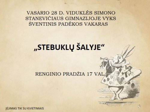 Vasario 26 dieną 7 – IV klasių mokiniai dalyvavo netradicinėje literatūros pamokoje. Jie susitiko su Respublikos skaitovų konkursų laureatu, aktoriumi Alvydu Brunalu. Svečias pateikė įdomių faktų iš Vytauto Mačernio gyvenimo, skaitė jo poeziją. Mokiniai turėjo galimybę išgirsti raiškų V. Mačernio poezijos žodį.