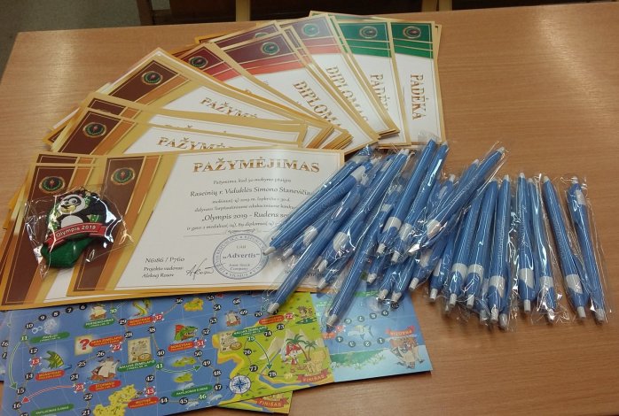 Mūsų gimnazijos mokiniai sėkmingai dalyyvavo edukaciniame konkurse „Olympis-2019-Rudens sesijoje“. Įteikta nemažai dovanų ir padėkos raštų mokiniams ir mokytojams. Sveikiname juos už puikius rezultatus