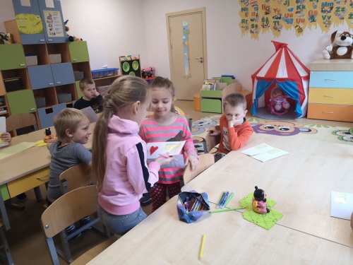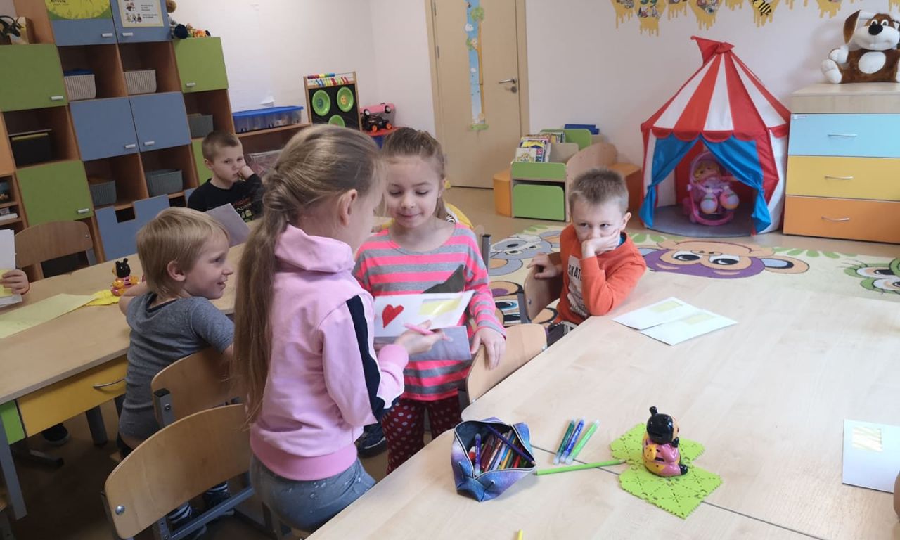 Po šių prasmingų pasikalbėjimų su socialine pedagoge, vaikai piešė savo draugą, dėjo piešinius į vokus ir dovanojo vienas kitam pasakydami, dėl ko jie vienas kitą vertina ir kodėl nori su tuo vaiku bendrauti.