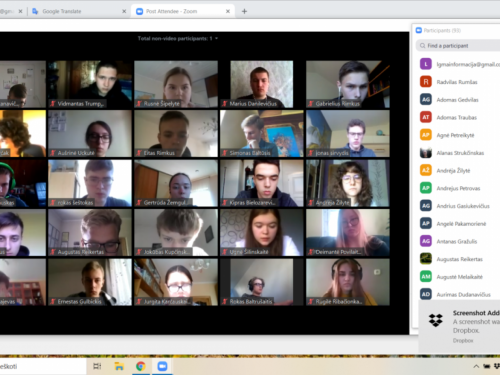 Gegužės 26 d. Ia klasės gimnazistai dalyvavo netradicinėje pilietiškumo pagrindų pamokoje, kurią vedė Vilniaus Gaono žydų istorijos muziejaus muziejininkė - edukatorė Natalja Cheifec, Vilniaus Choralinės sinagagos kantoriaus žmona. Žydų tauta išsiskiria savo dvasingumu, vertybėmis ir auklėjimu. Visas šios tautos tradiciškumas slypi jų religijoje. Paskaitos metu buvo prisiminta 10 Dievo įsakymų. Atrodo, kad viskas žinoma, tačiau žydų tautos žmonės šiuos įstatymus supranta tikslingiau bei giliau. Tai, kas žinoma, pasirodė tik iš dalies suprantama. Lektorė įtaigiais ir suprantamais pavyzdžiais pagrindė daugelį tiesų, kurias kasdienybėje pasirenkame suprasti paviršutiniškai. Ar žinome, kodėl žydų tauta buvo pasirinkta Dievo? Kodėl būtent tokie Dievo įsakymai yra skirti žmogui? Kodėl sinagogose nėra Dievo atvaizdo? Ką reiškia žodis AŠ? Ar žinome tikrąją jo prasmę? Kodėl žydų tautos žmonės savaitę pradeda nuo sekmadienio? Kaip vadovautis penktu Dievo įsakymu, jei aplinkybės yra sudėtingos? Šie ir daugelis kitų klausimų, išgvildenti susitikimo metu, paskatino susimąstyti. Sužinota ir įsakymų numeracijos reikšmė. Naujai pažvelgta į eutanazijos temą, atrastos naujos vagystės formos, apie kurias anksčiau nepagalvota. Lektorė pasidalino su gimnazistais ir laimės formule: „Laimė – kai esame patenkinti savo dalia, kai niekam nepavydim“. Jei kažko neturi, vadinasi to tau tiesiog nereikia.