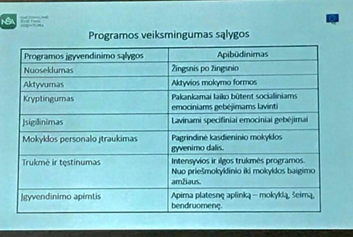 Gegužės 28-29 d. Nacionalinė švietimo agentūra organizavo nuotolinius mokymus „Prevencinės programos mokykloje. Kam jos ir ką daryti, kad jos suveiktų?“. Mokymus vedė lektoriai Dr. Antanas Valantinas ir psichologė Asta Pikšrienė. Mokymų metu kalbėjime apie lyderystės sampratą, komandų, grupių būrimą, sėkmingus prevencinių programų įgyvendinimo etapus, problemų išgryninimą, grupavimą, sprendimo būdus. Kiekvienas mokymų dalyvis turėjo atlikti namų darbų užduotis, kuriuos atsivežėme į birželio 12 d. mokymus, vykusius Kaune. Įspūdingoje vietoje, pačioje Kauno pilies pašonėje esančiuose „Domus Pacis“ piligrimų namuose vyko „gyvas“ susitikimas su lektoriumi A. Valantinu ir kolegomis iš įvairių Lietuvos ugdymo įstaigų. Buvo naudinga ne tik išgirsti lektoriaus mintis, bet ir dalintis patirtimi, kalbėtis apie įgyvendinamų prevencinių programų sėkmes ir tobulintinus dalykus.