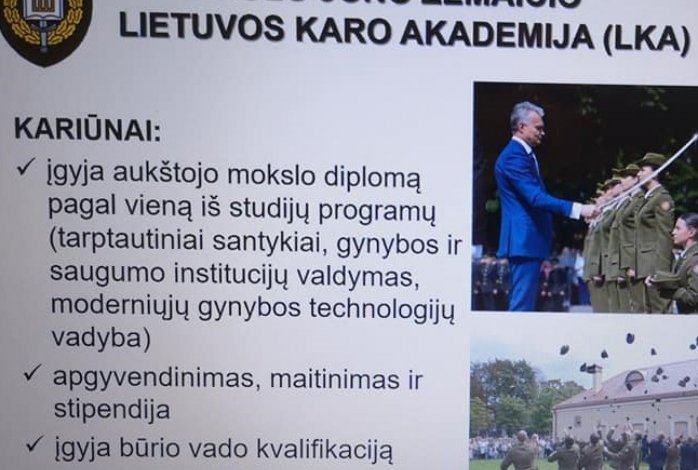 Antradienį I-III klasių fizinio ugdymo pamokose svečiavosi ir apie šiandienos Lietuvos kario kasdienybę pasakojo KOPOESKV civilių ir kariškių bendradarbiavimo specialistas Edgaras Baukys. Svečias pristatė Lietuvos krašto apsaugos sistemų struktūrą, taip pat akcentavo, kokios fizinės ir psichologinės savybės reikalingos, norint tapti kariu.