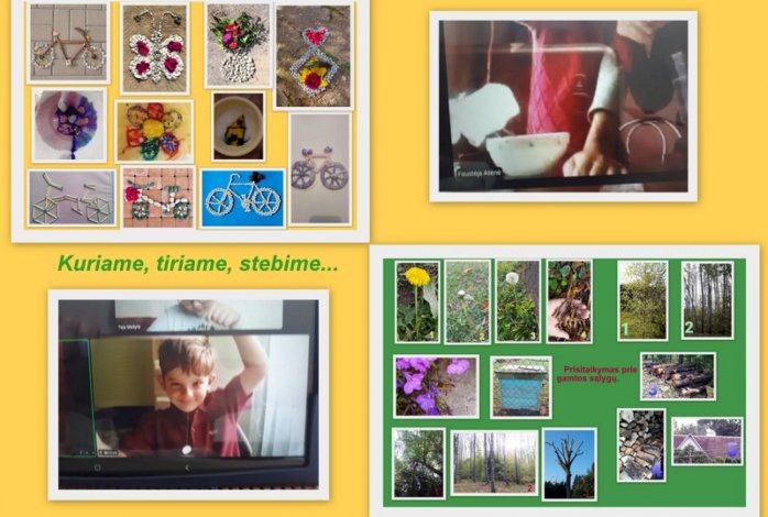 2a klasės mokiniai neformalaus švietimo būrelio „Smalsučiai“ metu stebi aplinką, tyrinėja ir atlieka eksperimentus. Išsiaiškinus, kad mokinukams labiausiai patinka važiuoti dviračiu, nusprendėme jį sukurti iš įvairių medžiagų. Puikios kompozicijos pavyko iš akmenukų ir rudenį žydinčių gėlių. Antrokėliai mielai tyrinėjo ir stebėjo gamtos pokyčius. Aptarę žmonių, gyvūnų, augalų prisitaikymo ypatumus keičiantis metų laikams, mokinukai viską užfiksavo ir sudėjo į seką. Daug teigiamų emocijų sukėlė triukas su ledu ir vandeniu. Antrokėliams labai patinka smalsauti, tyrinėti ir atrasti.