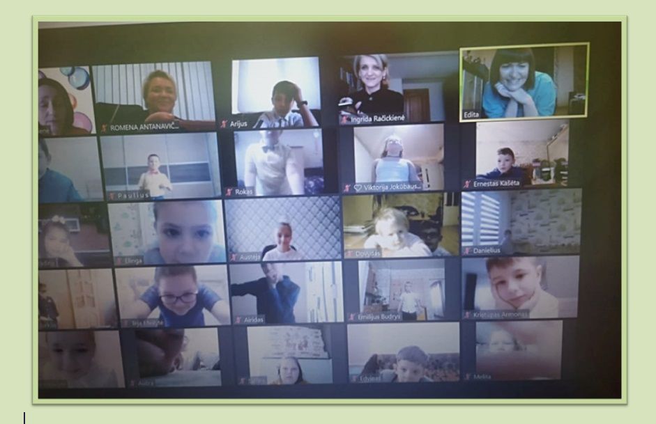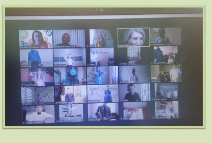 Susitikimą pradėdama socialinė pedagogė metodininkė Romena Antanavičienė mokiniams priminė susitikimų ir bendravimo svarbą, padėjo mintimis nusikelti net į istorinius laikus, kai buvo šokami bendravimo ir susitikimų šokiai. Mokytoja Ingrida visus pakvietė išsirinkti šokio porą ir, išlindus iš savo tariamo burbuliuko, pašokti „Ančiukų“ šokį. Siautulys prasidėjo nuo pirmųjų akordų. O tada šokio burbuliuką perėmė mažeikiškė vyresnioji choreografijos mokytoja Edita Aganinienė ir susitikimo dalyvius mokė „Varliukų“ šokio. Mažuose ZOOM langeliuose klapsėjo „varliški“ delniukai, linko kojos, į grindis kaukšėjo kulniukai, o plačios šypsenos puošė visų veidelius. Žinoma, susitikimo pabaigoje dalyviai dalijosi įspūdžiais, įsivertino, ko išmoko, kaip jautėsi, kuo šis susitikimas buvo naudingas. O kad tokie susitikimai yra reikalingi, neabejojo nei susitikime dalyvavusios pedagogės. Jos džiaugėsi mokinių energija, gražiomis išsakytomis mintimis, sklandžia pamokos eiga.