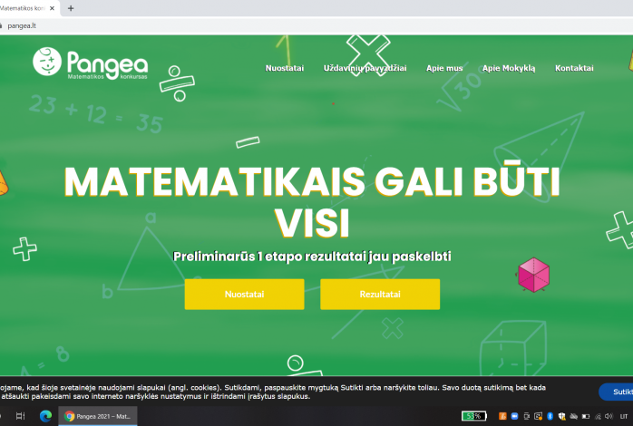 Jau tradicija tapo kiekvienais metais dalyvauti tarptautiniame matematikos konkurse „Pangea 2021“. Konkurso tikslas - populiarinti matematiką ir sudaryti galimybę tobulėti gabiems vaikams. Sausio 21 dieną vyko šio konkurso I – asis turas, kuriame dalyvavo net 19 pradinių klasių mokinių. Sėkmė lydėjo 4 mokinius, kurie surinko tinkamą skaičių taškų ir yra pakviesti dalyvauti II – jame šio konkurso ture, kuris vyks kovo 3 dieną. Jame dalyvaus šie mokiniai: Nojus Garbaliauskas (1a kl.), Ugnė Barauskaitė (1b kl.), Tėja Meilytė ir Edvinas Baltrušaitis (2a kl.), Urtė Laurinavičiūtė (4b kl.). Džiaugiamės šių mokinių rezultatais ir linkime jiems sėkmės II - jame ture.