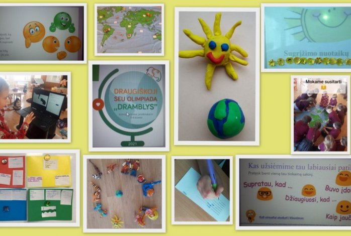Kovo 22-26 dienomis pradinių klasių mokiniai dalyvavo Draugiškoje SEU olimpiadoje „Dramblys“, kuri sutapo su pradinukų grįžimu į gimnaziją iš nuotolinio mokymosi. Šioje olimpiadoje mokiniai mokėsi draugauti, priimti šalia esantį draugą, tolerantiškai elgtis. Užduotys buvo skirtos 5 pagrindinėms socialinio ir emocinio ugdymo kompetencijoms ugdytis: savitvardos, savimonės, socialinio atsakingumo, tarpusavio santykių ir atsakingų sprendimų priėmimo. Visą savaitę pradinukai gilinosi į įvairias temas ir atliko įdomias užduotis. Mokinukai žaidė žaidimą „Klasės šnipas“, kėlė problemas ir kartu ieškojo visiems priimtinų sprendimo būdų, klausė ištraukos iš Rasos Lazdauskaitės knygos „Dviese bijoti drąsiau“ ir atliko interaktyvias užduotis bei refleksiją. Mokinukai diskutavo apie draugą ir draugystę, kalbėjo apie skirtybes ir lipdė savo draugą, kuris buvo net augintinis ar knyga. Kovo 26, tarptautinę SEU dieną, pradinukai ir visi, kas buvo gimnazijoje, surišo gražų minčių tinklą apie draugystę. Labai smagu, kad mūsų gimnazijos mokiniai nori būti draugiški, atsakingi ir tolerantiški.