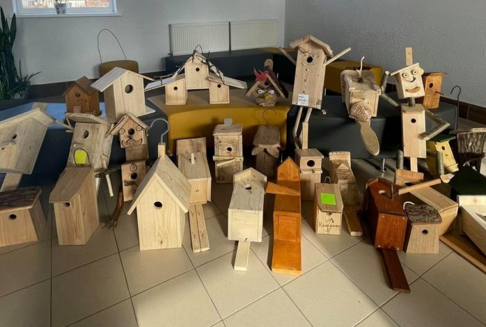 Dėkojame visiems gaminusiems, artimiausiomis dienomis šie nauji namučiai bus iškelti gimnazijos ir jos skyrių teritorijose. Kartu su mumis paukšteliai dėkoja priešmokyklinukams: U. Laurinaitytei, L. Šebelskytei, A. Sabučiui, J. Petrauskui, V. Lipnickaitei, T. Baltrušaičiui, D. Alarbied, M. Bertašiui, E. Levickiui, E. Kaminskui, G. Petravičiui, M. Vaitkevičiui, E. Trumpiūtei, M. Branauskui, pradinukams: A. Grigaičiui, K. Čėsnai, A. Bukantytei, U. Mėlinytei, D. Trumpiūtei, N. Garbaliauskui, V. Trumpelytei, K. Dauniui, E. Baltrušaičiui, K. Šaltmėriui, G. Uzniui, R. Kalvaičiui, A. Apučiui, L. Šveikauskui, A. Navickaitei, D. Jokūbaičiui ir vyresniems mokiniams: D. Baltrušaičiui, A. Vaitkevičiūtei, D. Baranauskui.