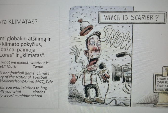 Mokiniai daugiau sužinojo apie klimato kaitos tendencijas, kokie procesai vyksta Baltijos jūroje ir šių procesų poveikį Lietuvos gamtai bei gyventojams.