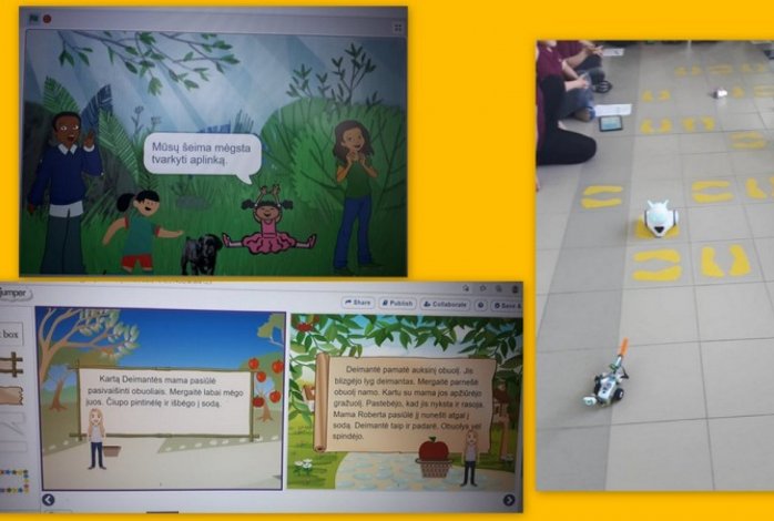 2a klasės mokiniai integruotų veiklų metu bei per neformalaus švietimo „Smalsučiai“ užsiėmimus naudojasi įvairiomis programomis ir kuria projektus. Mokiniams labai patinka kurti nuostabias istorijas, pasakas, nutikimus e-knygoje su „Storyjumper“ programa, parinkti pasakojimui tinkantį paveikslėlį bei veikėjus arba įkelti savo piešinius iš kompiuterio.