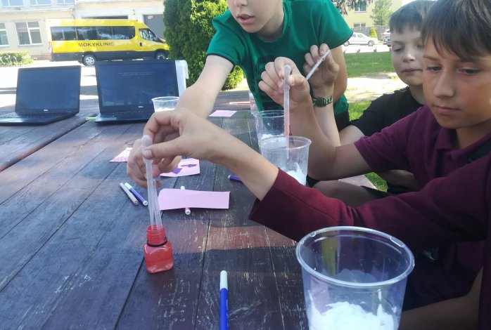 Birželio 16 dieną visi pradinių klasių mokiniai, pasinaudojus naudojantis kultūros paso galimybėmis, dalyvavo STEAM mokslu paremtoje edukacijoje „Kokias paslaptis slepia vanduo?“. VŠĮ ,,Edulandas“ edukatoriai atvyko į mūsų gimnaziją ir užsiėmimus vedė lauko klasėse. Dalyvaudami pamokoje mokiniai turėjo įveikti aštuonis lygius, pakartojo žinias apie vandens būsenas, vandenynus, vandens santykį Žemės planetoje ir žmogaus organizme, sprendė ekologines problemas, atliko įvairius bandymus, aiškinosi vandens apytakos ratą. Labiausia patiko ištirti vandens savybes naudojant metalą, suprasti veidrodinį vandens atspindį ir sukurti lietų. Patirtinė pamoka buvo labai įdomi ir naudinga.