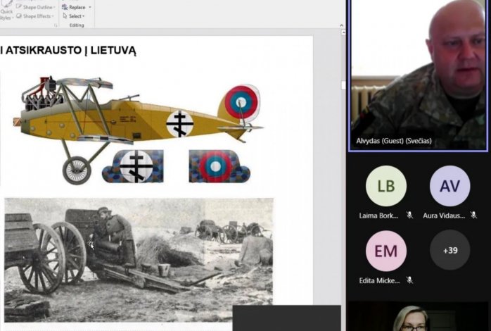 Besitęsiant paskutinės mokslo metų savaitės integruotoms veikloms su krašto apsauga, jau antrus metus iš eilės paskaitą pravesti sutiko karinių oro pajėgų vyriausiasis puskarininkis srž. mjr. Alvydas Tamošiūnas. Tai buvo puiki pamoka integruota su Lietuvos istorija, nes svečias nagrinėjo Nepriklausomybės kovas ir Lietuvos apgynimą prie Radviliškio 1919 metais. Dėkojame srž. mjr. Alvydui Tamošiūnu už istorijos atskleidimą pro karininko prizmę, įdomias įžvalgas ir galimybę į legendines kovas pažvelgti kitaip. Tikimės tolesnio bendradarbiavimo ir puikių paskaitų.