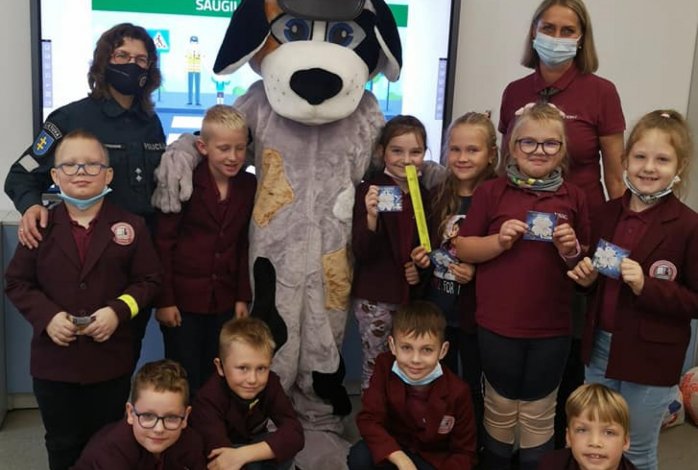 Rugsėjo 23 d. 1a,b ir 2a,b klasių mokinukai dalyvavo saugaus eismo pamokose, kurias vedė policijos pareigūnai Giedrė Deveikienė ir Darius Jonaitis, o žinias tikrino policininkų palydovas šuniukas Amsis. Mokinukai ne tik pagilino saugaus eismo žinias, bet ir gavo dovanų - rudenį labai reikalingų atšvaitų, kuriuos dovanojo Visuomenės sveikatos biuras.