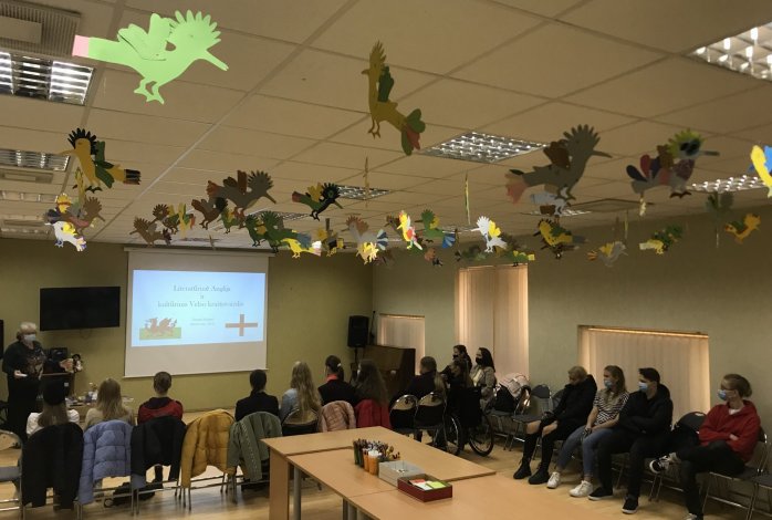 Spalio 6 dieną IIIa klasės mokiniai lankėsi Raseinių Marcelijaus Martinaičio viešojoje bibliotekoje. Ten gimnazistai turėjo galimybę išklausyti pranešimą ,,Literatūrinė Anglija ir kultūrinis Velso kraštovaizdis“, pakeliauti kūrėjų pėdsakais. Pristatymo metumokiniai susidomėję klausėsi apie V. Šekspyro, Beatrix Potter, Lewis Carrol, Č. Dikenso asmenybę, gyvenimą ir kūrybą. Po to bibliotekos darbuotojai pakvietė apžiūrėti knygų ir lėlių – literatūrinių personažų – parodą ,,Atėję iš knygų“. Gimnazistaiapsilankė bibliotekos Knygos muziejuje, apžiūrėjo eksponuojamus seniausius, vertingiausius, bibliotekoje saugomus XVII-XXa. I pusės leidinius. Taip pat lankėsi memorialiniame M. Martinaičio kambaryje, apžiūrėjo poeto darbo stalą, rašomąją mašinėlę, jo paties padarytą suolelį bei kitus daiktus. Vėliau gimnazistai savo įspūdžius perteikė kurdami popierinius kukučius. Renginio pabaigoje visi buvo pakviesti leistis į kelionę po miestą ir aplankyti kultūros paveldo objektus, pasinaudojantRaseinių miesto istoriniu pasu.”