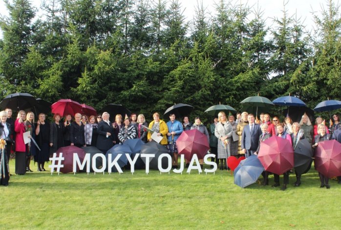 Ko reikia, kad mokytojas būtų laimingas? Nedaug, tik kokių 50-ties smulkmenų. Šiandien, švenčiant tarptautinę Mokytojo dieną, jų buvo koks 100! Paprastų, nepaprastų, nuoširdžių, netikėtų, smagių, šaunių, jautrių... Rytas prasidėjo smagumais - visi mokytojai buvome padabinti linksmomis kepurėlėmis, prisiekėme jas nešioti visą dieną ir apdovanoti stebuklingų galių turinčiais raudonais rašikliais. Per pirmąją pamoką klasių auklėtojai susitiko su auklėtiniais ir jų veiduose pražydo šypsenos, o rankose – gėlės. Kiek vėliau visi susitikome gimnazijos stadione, kur priėmėme ir svečius: Raseinių r. savivaldybės merą Andrių Bautronį, Švietimo ir sporto skyriaus vedėją Modestą Lukoševičienę ir šio skyriaus specialistes Danutę Vizbarienę, Astą Pagarauskaitę ir Liną Stulgienę. O svečiai atvyko ne tuščiomis. Mokytojo dienos proga už pačius įvairiausius pasiekimus Mero padėkomis buvo apdovanoti net 9 mūsų gimnazijos mokytojai ir vadovai. Tai – direktorė Danutė Janukienė, direktoriaus pavaduotoja ugdymui Jolanta Jonaitienė, pradinio ugdymo mokytoja ekspertė Ingrida Račickienė, lietuvių kalbos mokytoja metodininkė Laimutė Jaščepaitė, istorijos mokytoja metodininkė Gintarė Tytmonienė, geografijos mokytoja ekspertė Vilma Jokubauskienė, anglų kalbos mokytoja metodininkė Jurgita Parnarauskienė, logopedė metodininkė Stasė Kuodienė ir tikybos vyresnioji mokytoja Edita Baltrušaitienė. Mokiniai gausiais plojimais palydėjo kiekvieną, einantį atsiimti padėkos. Visi gimnazijos mokytojai buvo apdovanoti skėčiais su simboliniu užrašu – Augdamas Atsakingai Auginu. Šis skėtis turi saugoti ne tik nuo lietaus, bet ir nuo visų negandų. Pamokose mokytojus pakeitė mokiniai, puikiai atspindėdami mokytojus, jų darbo metodus ir braižą. Mokytojai juokavo, kad turėjo progą save stebėti iš šalies. Ir tai dar ne viskas! Nuotaikinga, jautri ir nuoširdi paskutinė šventės dalis laukė po pamokų pramogų salėje. Valandai pamiršome virusus, negandas ir kitus nemalonius dalykus ir pasinėrėme į šventišką šurmulį su dainomis, šokiais, žaidimais.
