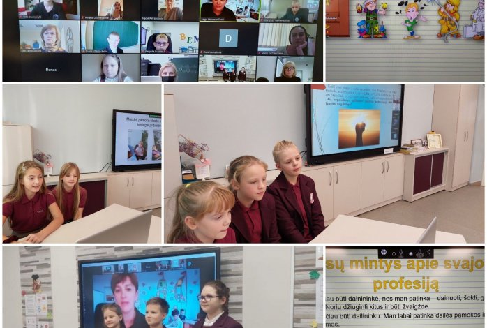Šiandien vyko respublikinė bendrojo ugdymo įstaigų pradinių klasių mokinių ir mokytojų nuotolinė konferencija „Mano svajonių profesija“. Šiai konferencijai ruošėsi ir joje dalyvavo gausus būrys ir mūsų gimnazijos pradinių klasių mokinių. 2a klasės mokinys Emilis Klapatauskas skaitė pranešimą „Mano šeimos profesijos“, 3a klasės mokinys Kristupas Čėsna - „Policijos pareigūno profesija“, Tėja Meilytė - „Svajoju joti (jojimo trenerė)“, Arielė Petkevičiūtė - „Mano profesija – mokytoja“, 4a klasės mokiniai Milana Arbašauskaitė ir Dominyka Žalabinaitė - „Svajonių profesijos link“ bei Greta Jokūbauskaitė, Jogailė Piatkutė ir Matas Jaškauskas - „Mano svajonių profesija“.