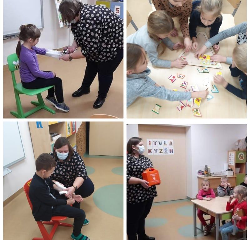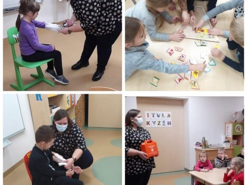 Vaikystėje vaikai turi daug svajonių, kurios užaugus ima ir išsipildo. Dažnai paklausiame jų, o kuo tu norėtum būti, kokia profesija tau atrodo pati įdomiausia. Atsakymai būna įvairūs pradedant nuo policininkų ir baigiant šokėjais ar aktoriais. Šią savaitę priešmokyklinukai daug dėmesio skyrė įvairioms profesijoms. Turėjome ir svečių, kurie įdomiai ir vaizdžiai pristatė savo darbus. Pirmiausia apsilankė gimnazijos sveikatos specialistė Lina. Ji papasakojo, kokias priemones naudoja savo darbe, kaip suteikiama pirmoji pagalba nutikus nelaimei, su vaikais aptarė, koks maistas kenkia mūsų dantims, dėliojo sveiko maisto piramidę. Kiti svečiai apsilankė su šuniuku Amsiumi. Policijos pareigūnė papasakojo vaikams kaip saugiai elgtis gatvėje, išlipus iš autobuso ar einant gatve tamsiu paros metu. Žinoma, pristatė ir savo profesiją. Vaikai galėjo pamatyti, kaip atrodo policininko naudojami daiktai: ginklas, antrankiai, lazda, racija ir pan. Didžiausias džiaugsmas vaikus aplankė kieme, kada jie galėjo įlipti į policijos automobilį, išgirsti skleidžiamą sirenos garsą bei pamatyti mirksinčias policijos automobilio šviesas. Policijos pareigūnė kartu su Amsiumi įteikė vaikams po atšvaitą. Smagu, kad vaikai turėjo tokią galimybę susipažinti net su dviem rimtomis profesijomis. Dar kartą dėkojame svečiams!